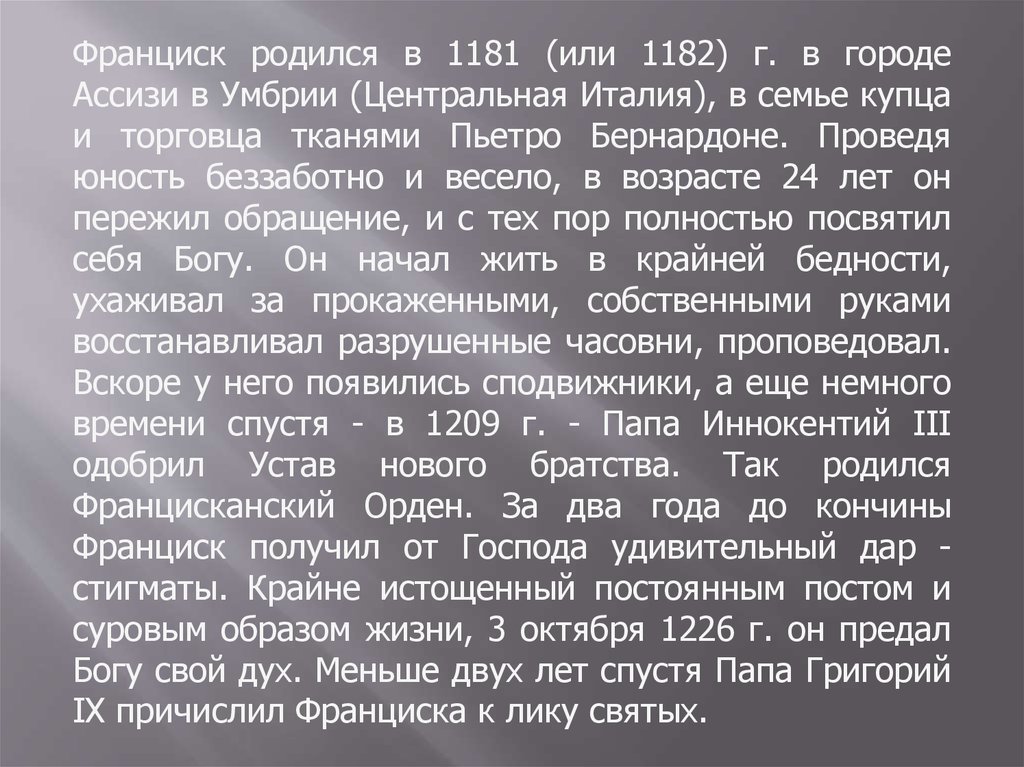 Особенность франциска