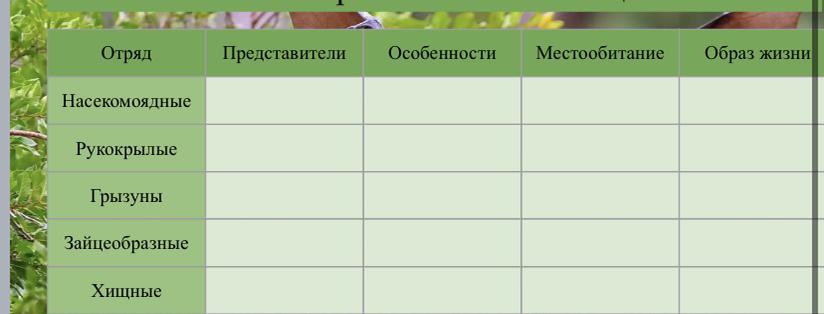 Особенности строения и образа жизни млекопитающих таблица