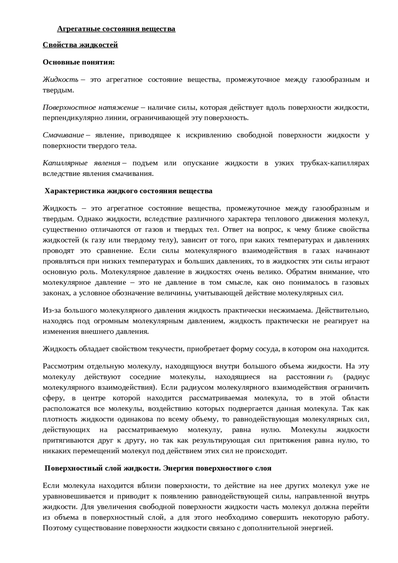 Особенности строения и свойства жидкости