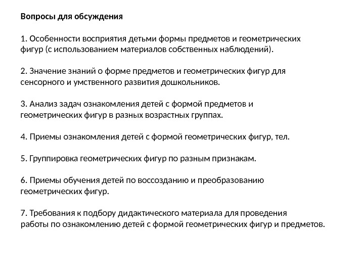 Особенности восприятия формы предмета