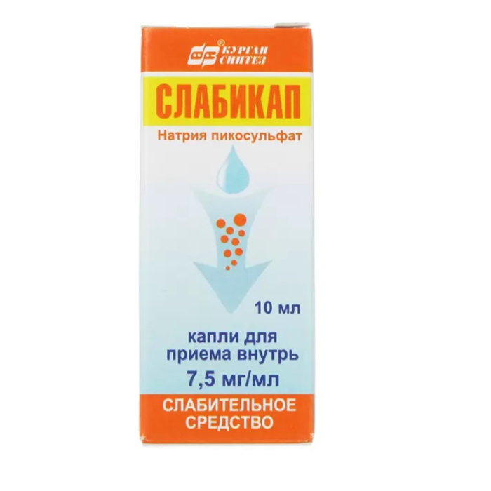 Натрия пикосульфат (входит в состав Гутталакса, Лаксигала, Слабикала, Слабилена) Препараты действуют только в толстом кишечнике, замедляют всасывание воды и электролитов, усиливая мышечную активность кишечника .