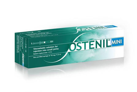 Остенил Мини - имплантат вязкоупругий стерильный для внутрисуставных инъекций, инновационное средство на основе гиалуроновой кислоты, применяемое для локальной терапии остеоартроза мелких суставов, в том числе суставов кистей и стоп, локтевого, височно-нижнечелюстного и фасеточных суставов .