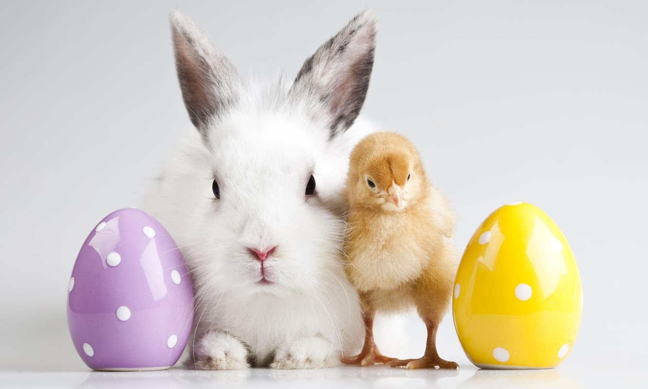 Osterhase leckt die Eier