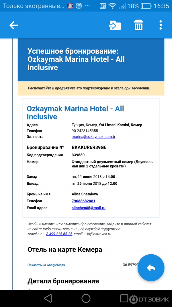 Островок бронирование в турции