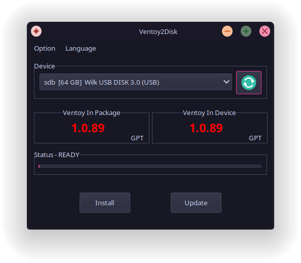 Распаковал zip и запустил Ventoy2Disk и погнал тыкать на кнопки.
