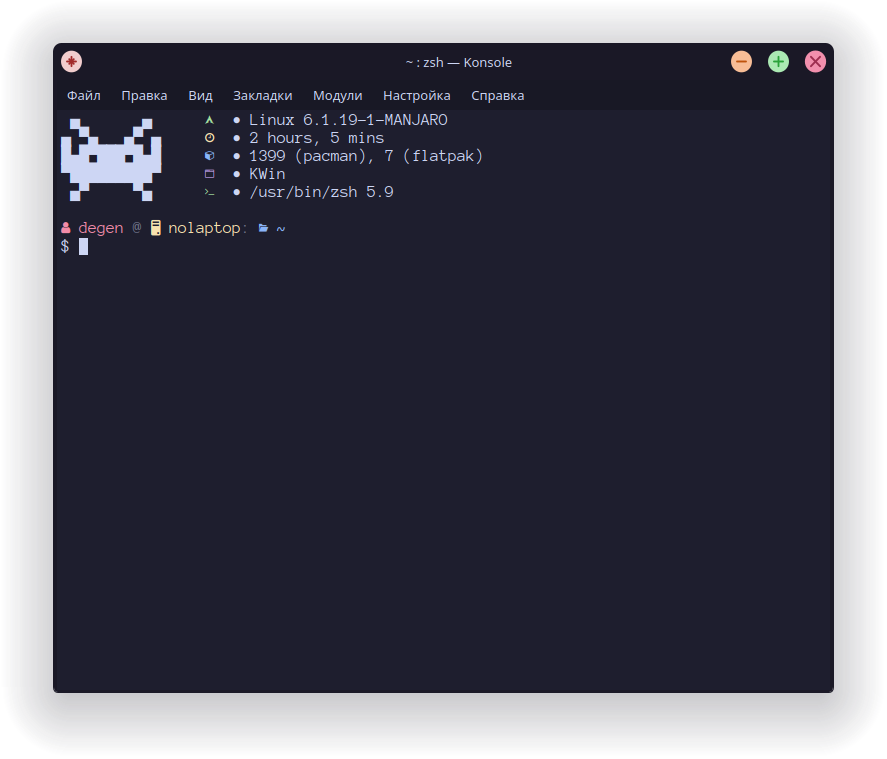 В Manjaro Plasma (она же KDE, они же Кеды) запускаем Konsole - енто местный терминал.