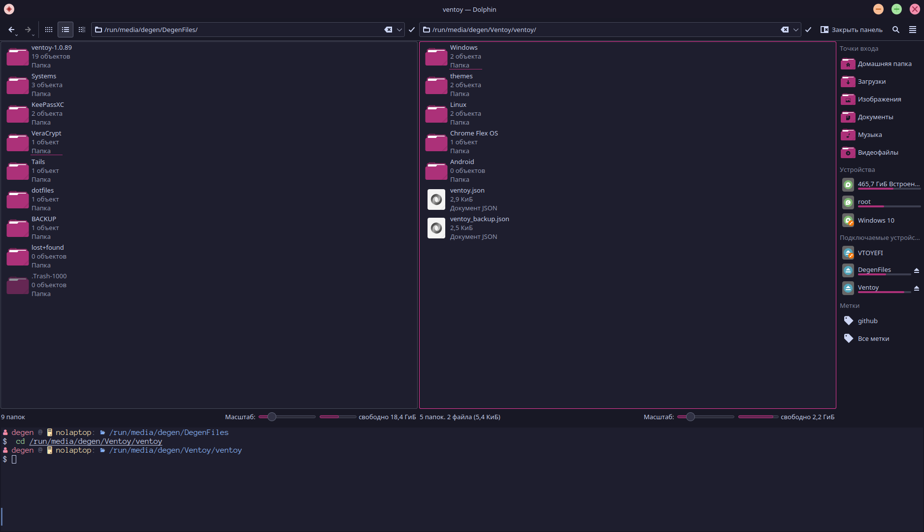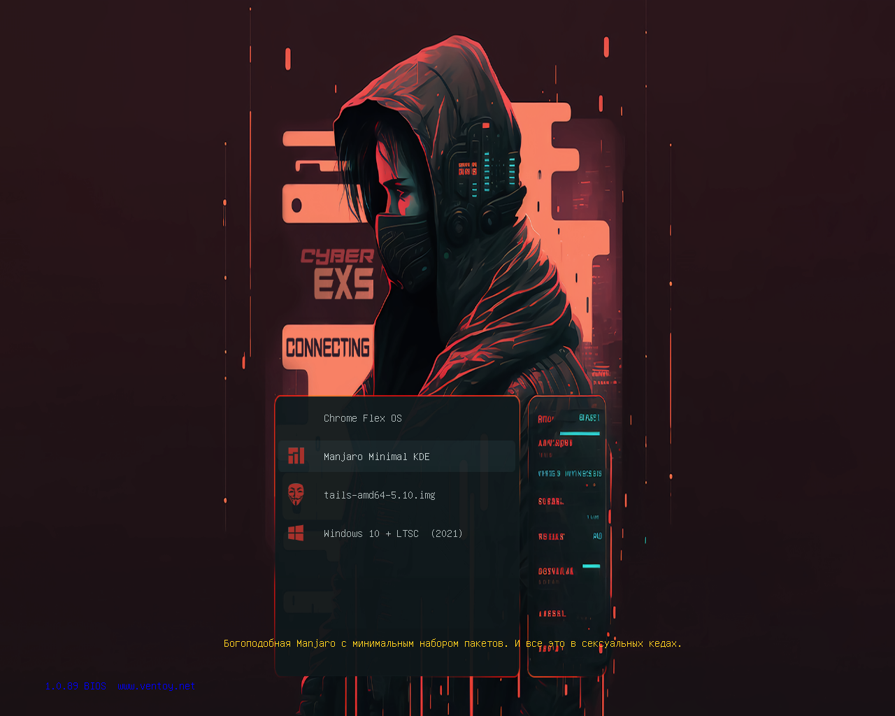 Я не буду углубляться в запуск прочего софта из папки ventoy, вроде настройки плагинов. Главное, что ты можешь положить любые .iso/.img и etc в /ventoy/ventoy и запускать их на любом* ПК. Однако, у меня там присобачено красивое меню и подписи у всех образов систем, чтобы и через год понимать шо я туда установил.