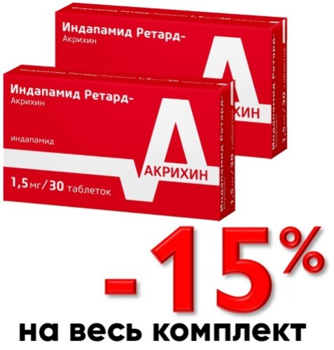Индапамид Ретард таблетки п .п .о . пролонг действия 1,5мг 30шт ЗАО Канонфарма Продакшн 129 руб . заказать Периндоприл Плюс Индапамид таблетки п .п .о . 0,625мг+2мг 30 шт .