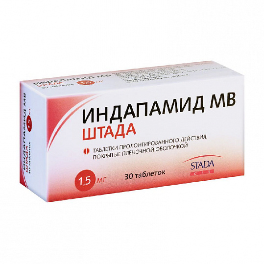 Форма выпуска, упаковка и состав препарата Индапамид . Таблетки пролонгированного действия, покрытые пленочной оболочкой от белого до почти белого цвета, круглые, двояковыпуклые . 1 таб . индапамид . 1 .5 мг . Вспомогательные вещества: лактозы моногидрат, гипромеллоза, магния . . .