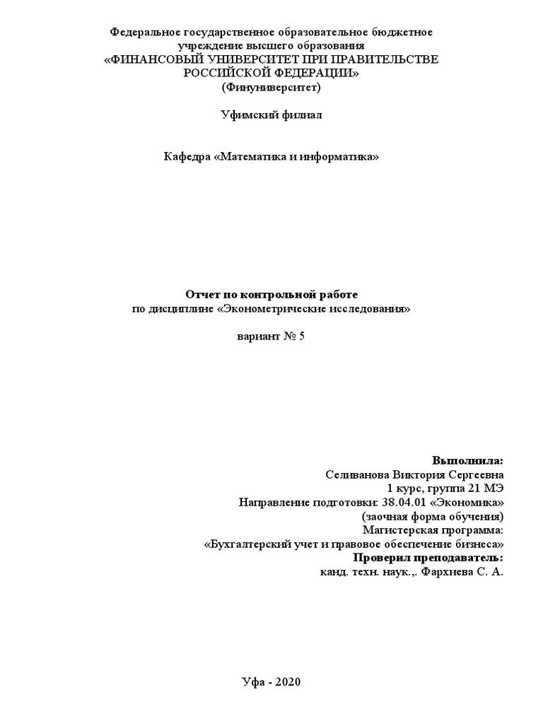Отчет По Контрольной Работе По Математике