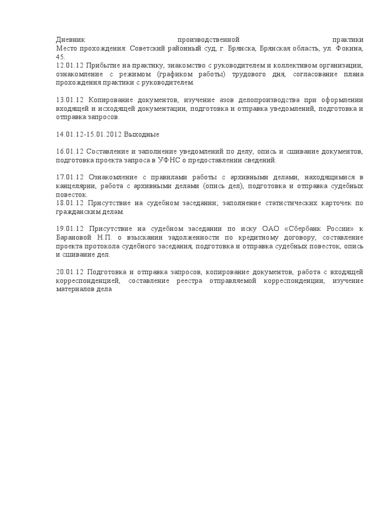 Отчёт По Практике В Районном Суде [Doc] - Все Для Студента