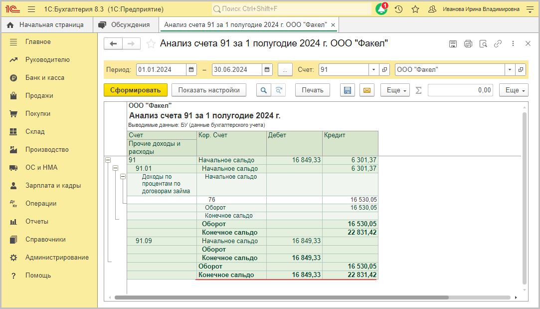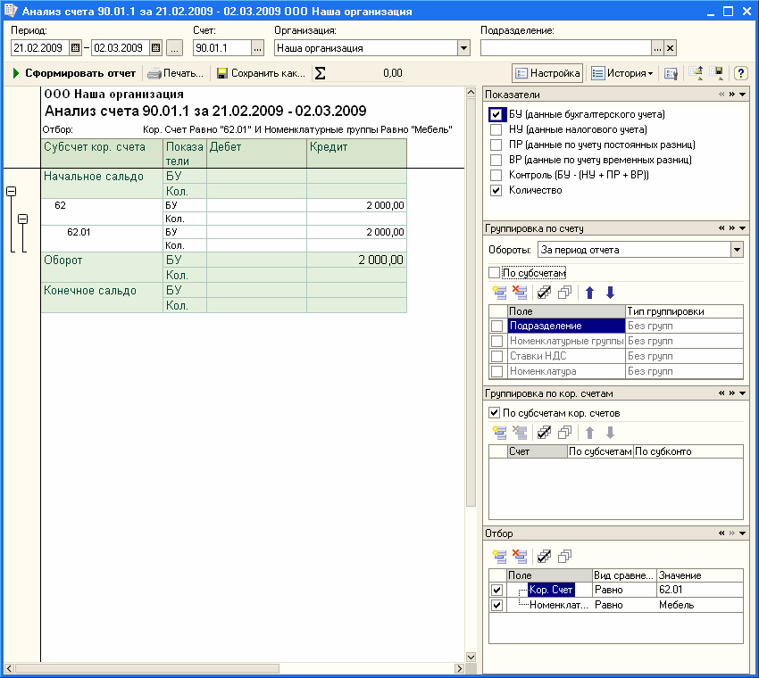 Отчет анализ счета