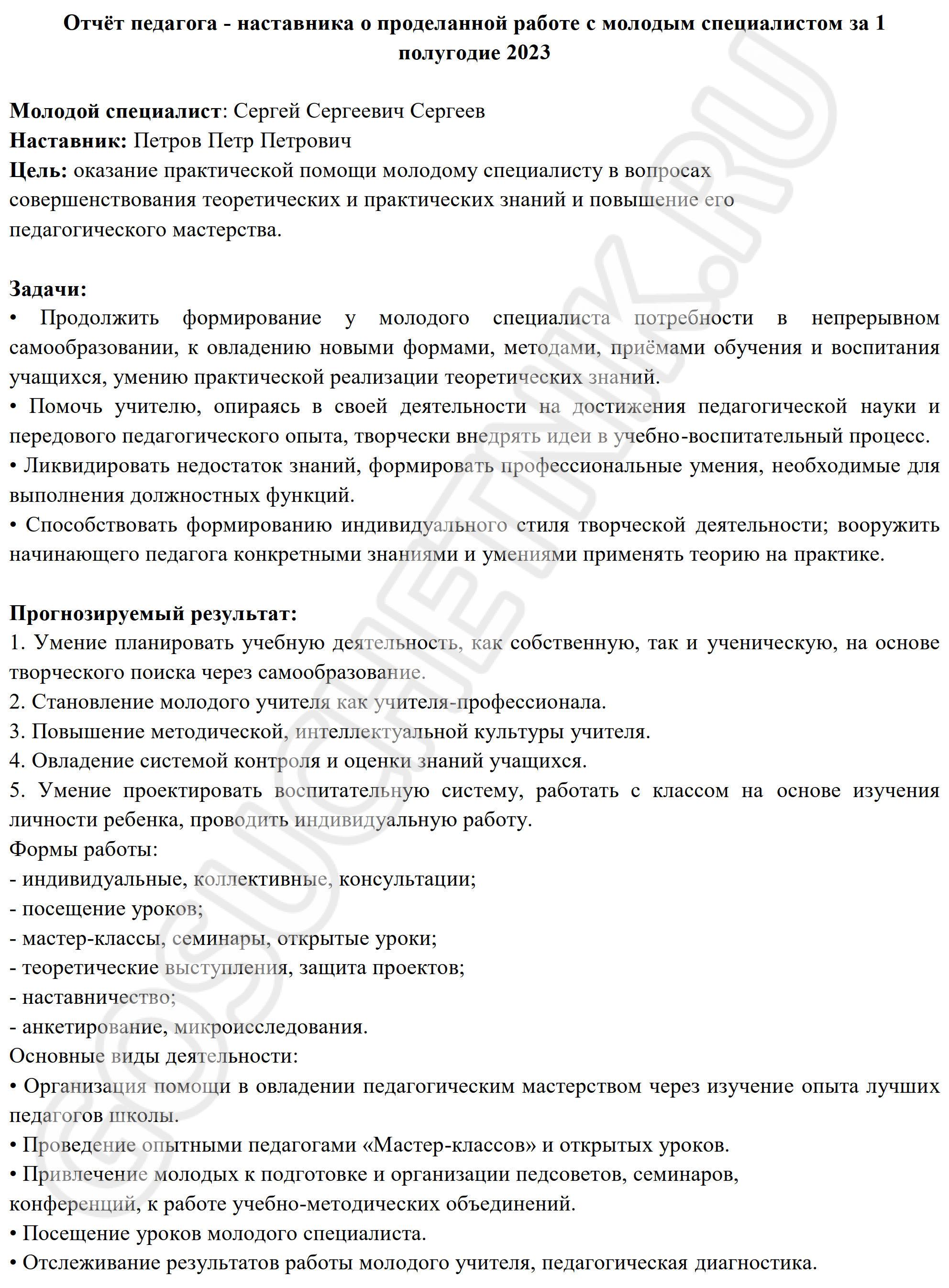 Отчет наставников в школе