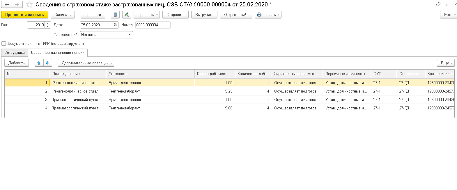 Отчет пфр льготных профессий