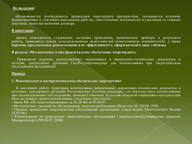 Скачать отчет по практике - в формате rtf . Название файла: Проведение энергоаудиторских работ О проекте