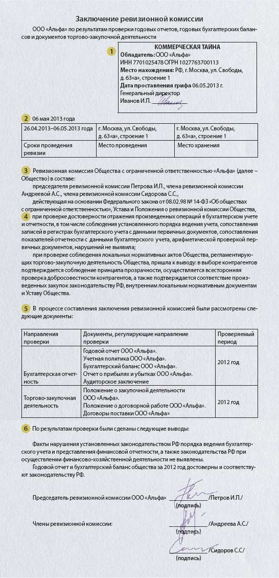 Отчет ревизора образец