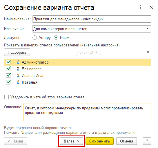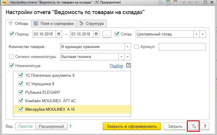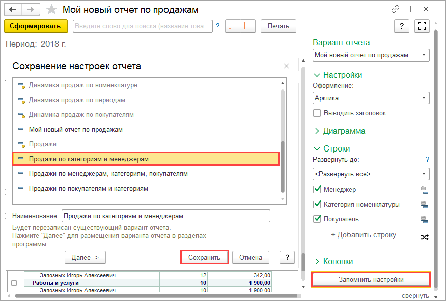 Отчеты настройка параметров 1с