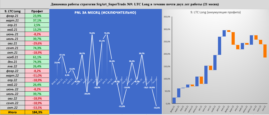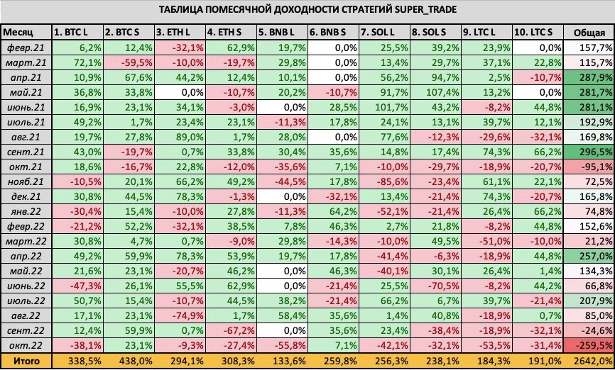 Отчёт доходности SuperTradeSergius Art1. BTC Long2. BTC Short3. ETH Long4. ETH Short5. BNB Long6. BNB Short7. SOL Long8. SOL Short9. LTC Long10. LTC ShortОбщая таблица доходности