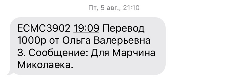 Из них 1000₽ перечислили Марчину.