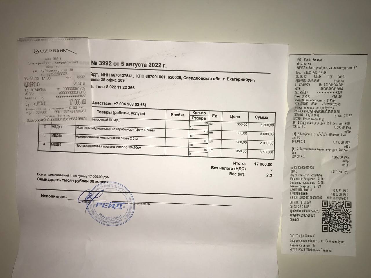 ППИ, ножницы, скотч, противоожоговые повязки — 17000₽