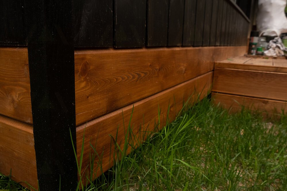 Отделка цоколя доской