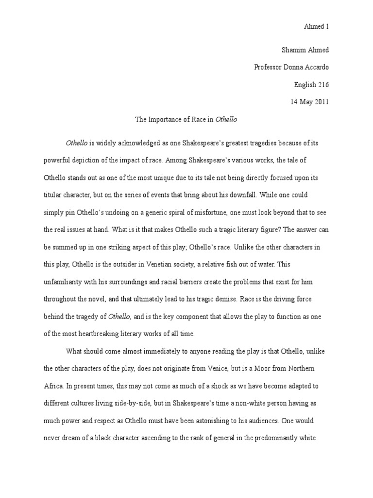 Theme Of Racism In Othello Essay; Play By Shakespeare β’ Es