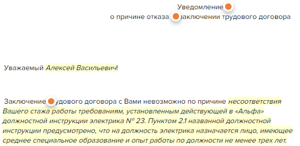 Отказ соискателю письменно