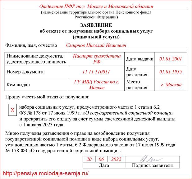 Отказе от получения набора социальных услуг 107 фото