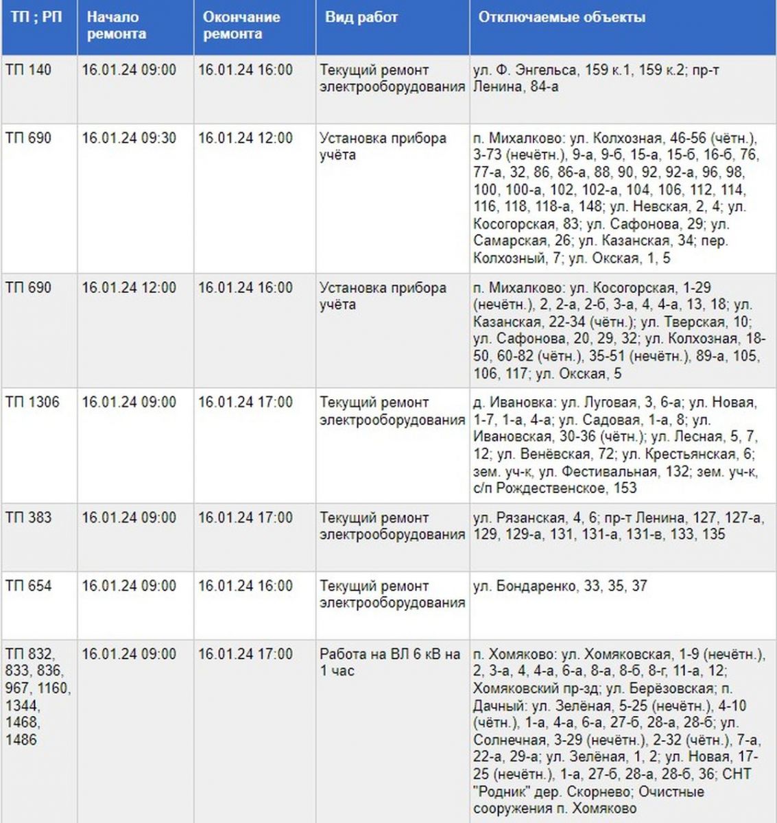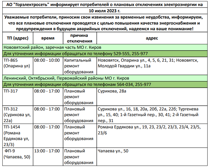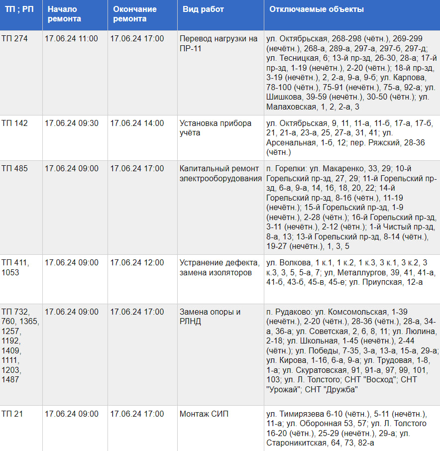 Отключение света 11 июля
