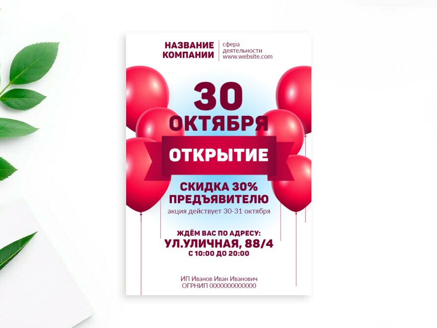 Открытие магазина акции