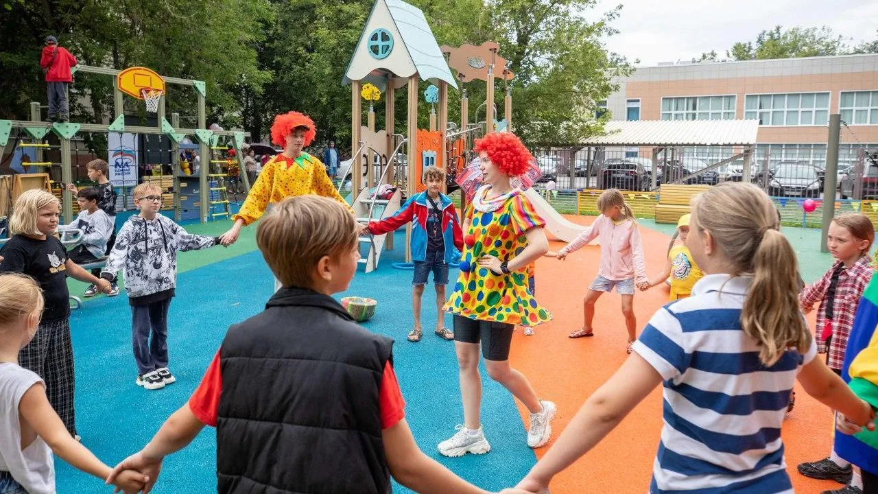 Открытие новых детских площадок 106 фотографий