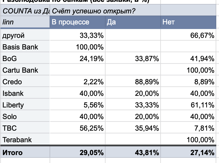 Службы безопасности банков усиленно выискивают в анкетах KYC(Know Your Customer) “нечистые российские деньги” – есть случаи, когда людям отказывают в открытии счёта. Есть такая и такая табличка из добровольных отзывов, можно посмотреть результаты самостоятельно.