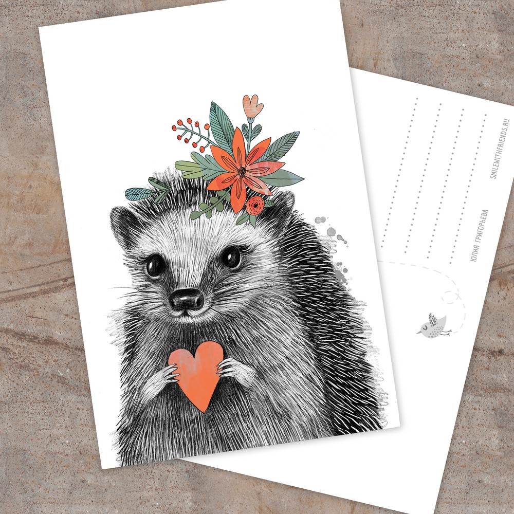 Открытка с ежом