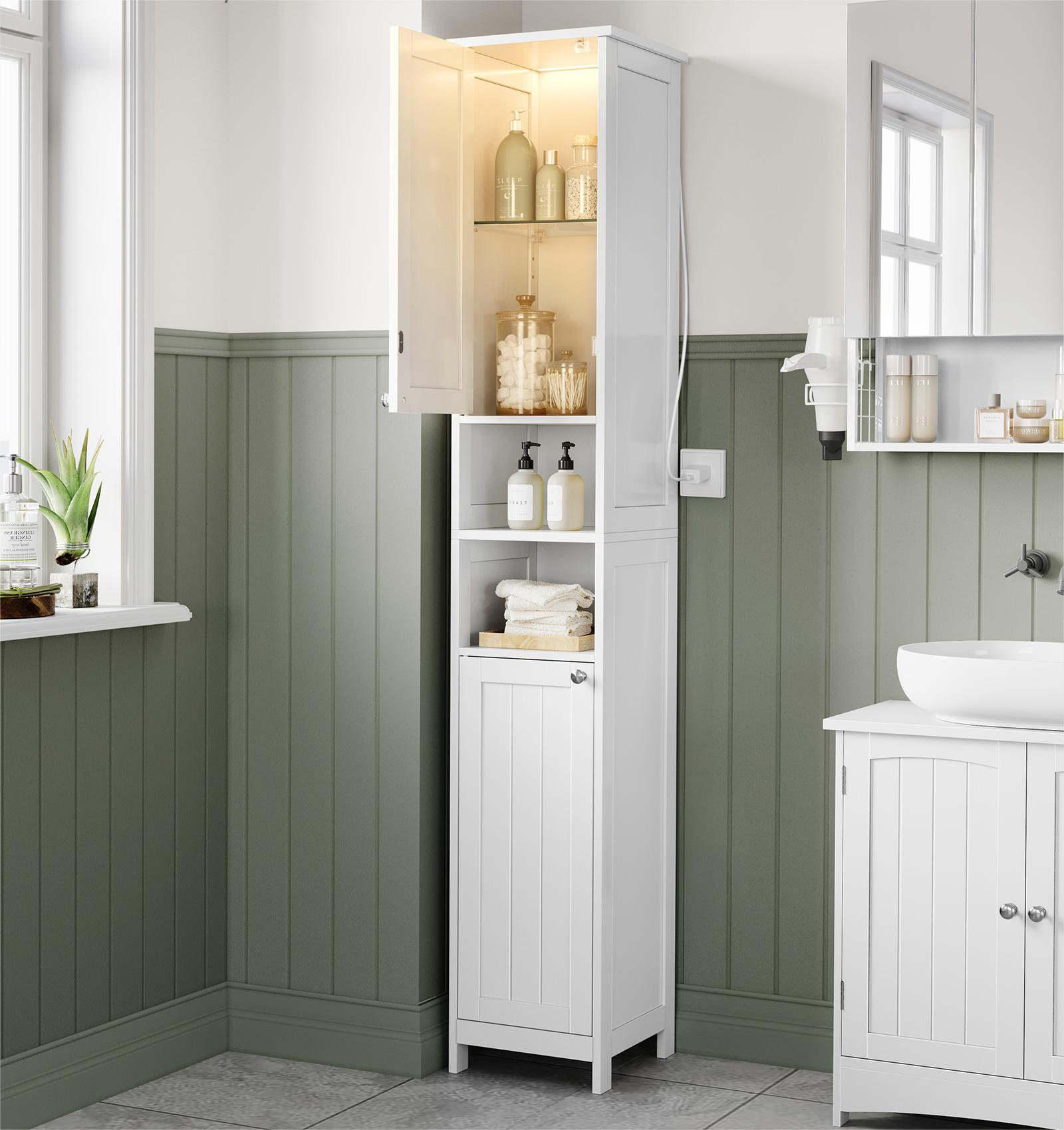 Открытые шкафы в ванной