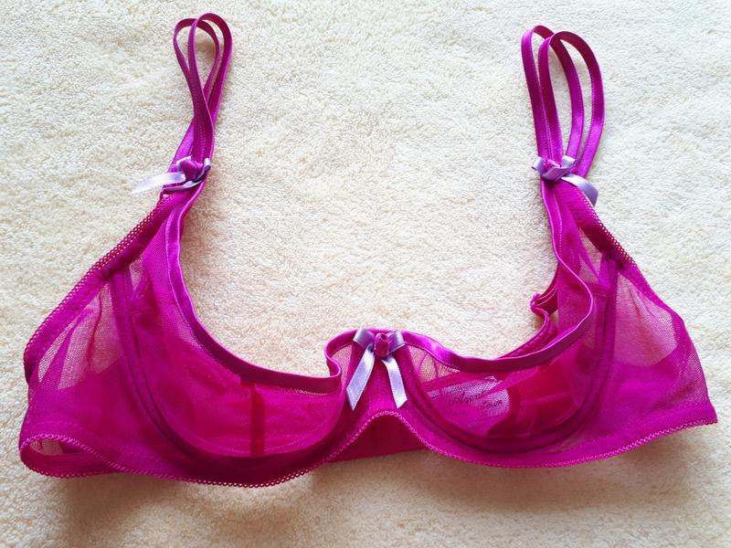 Это открытый бюстгальтер . Отличается от остальных моделей глубоким вырезом — чашки сделаны так, чтобы не слишком прятать грудь .
