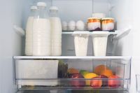 Открытый йогурт в холодильнике