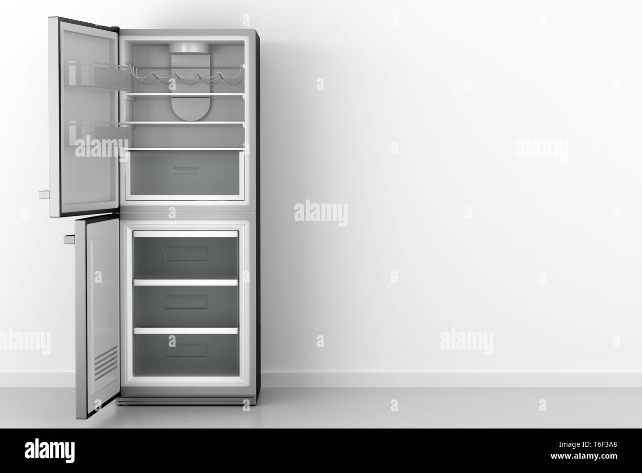 Открытый пустой холодильник