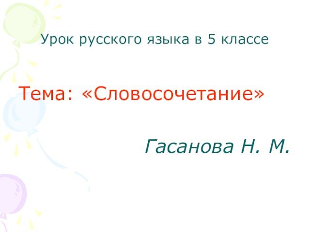 Открытый урок словосочетание