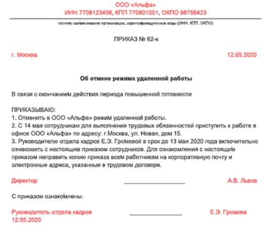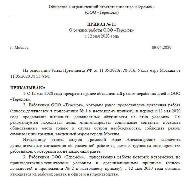 Отмена режима работы