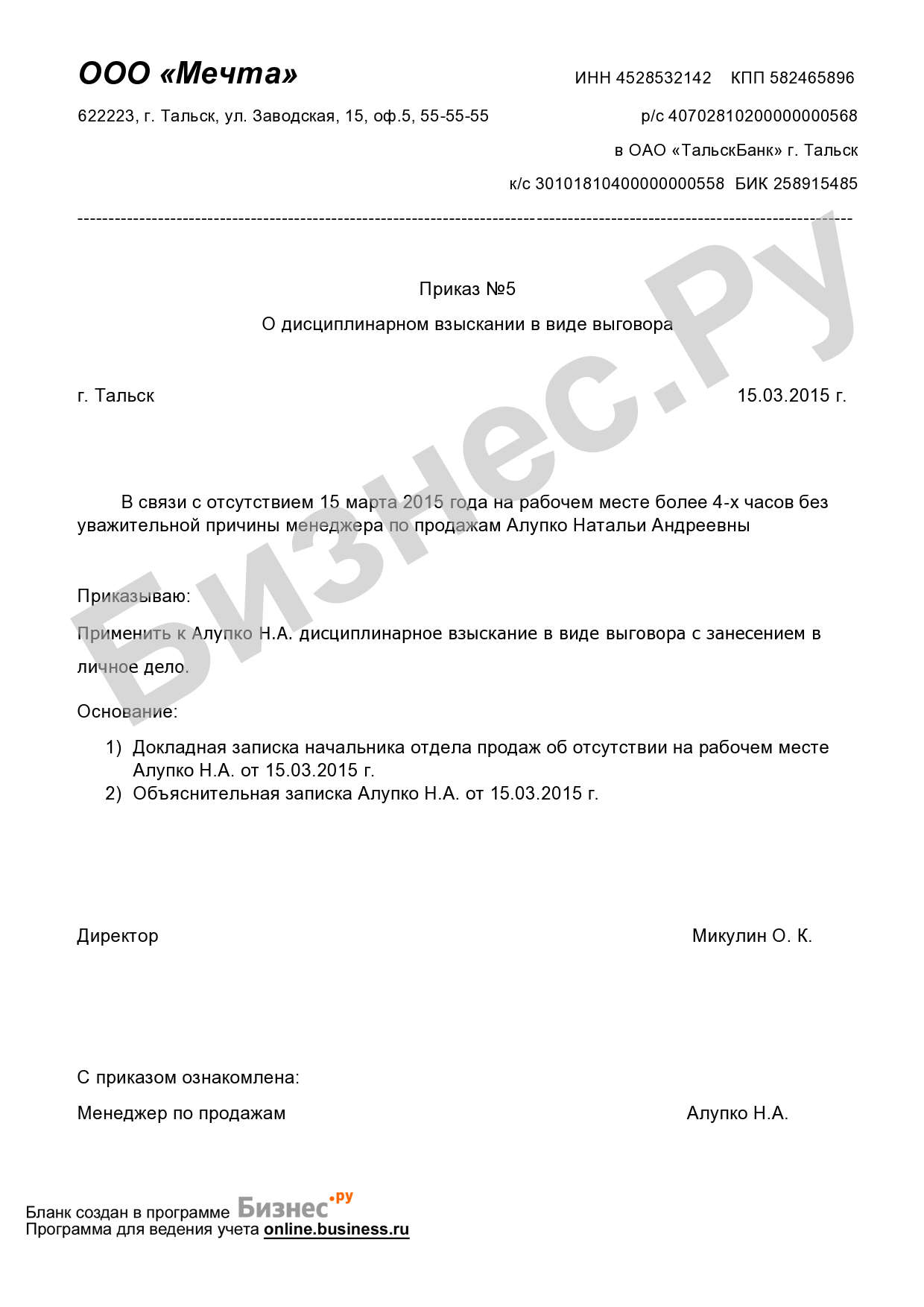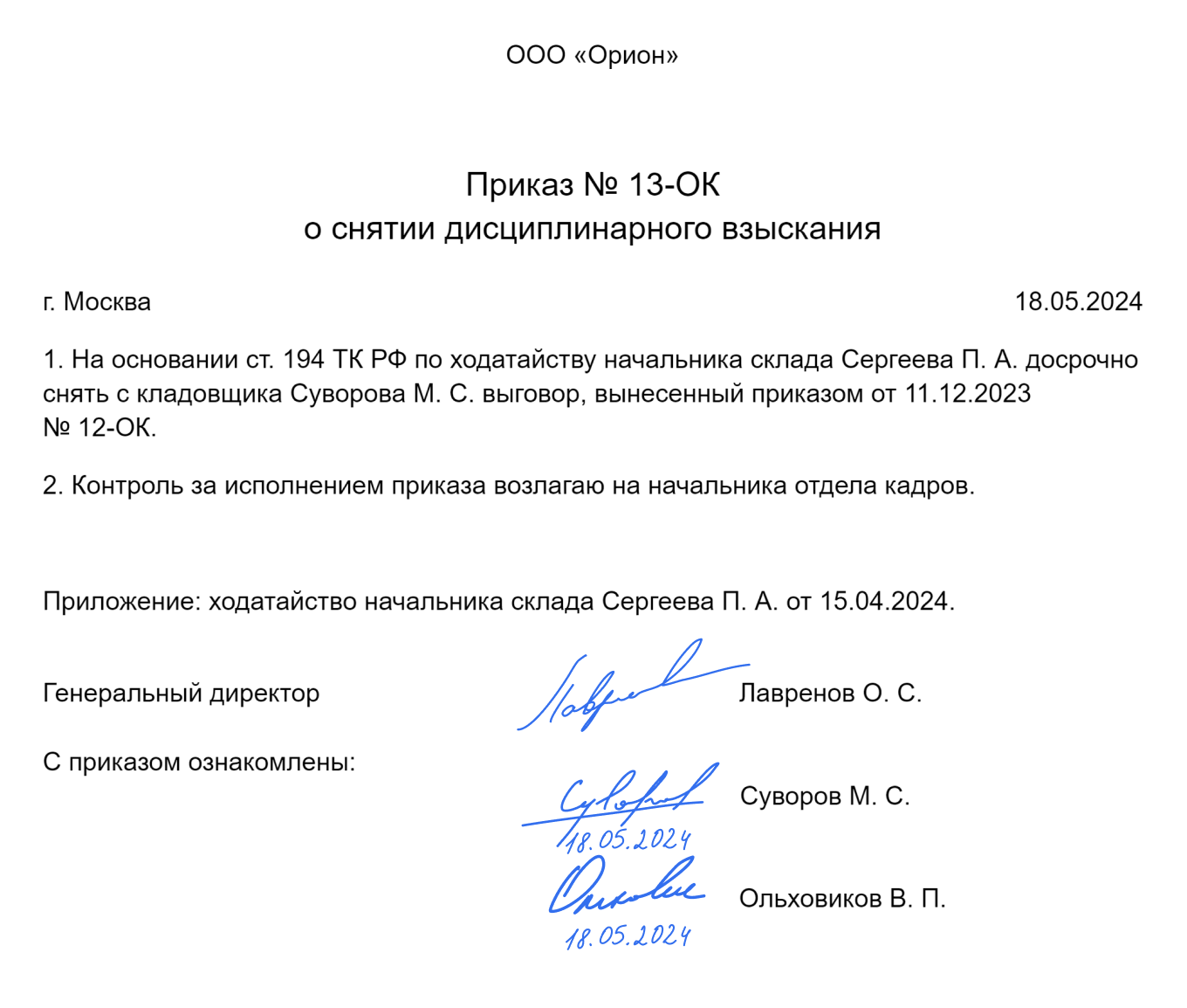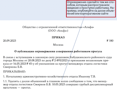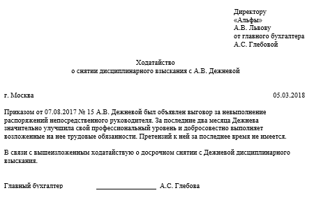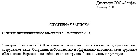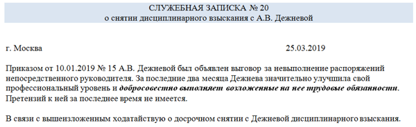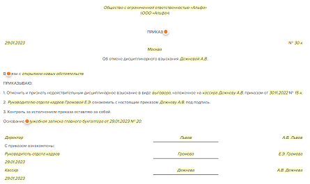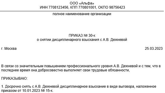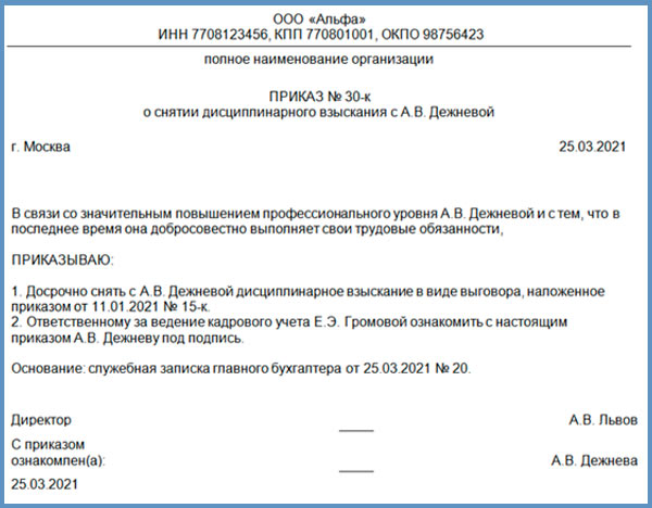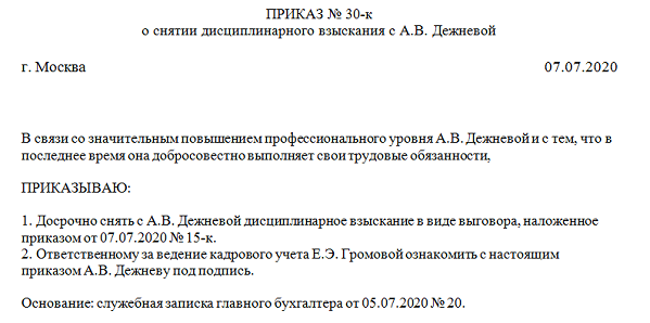 Отмена выговора приказ