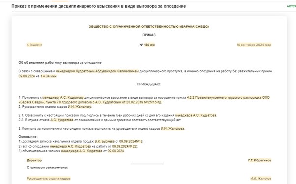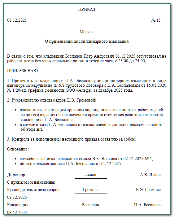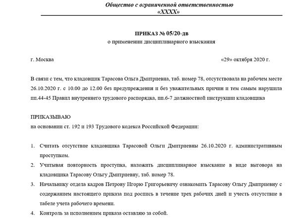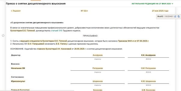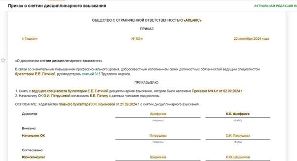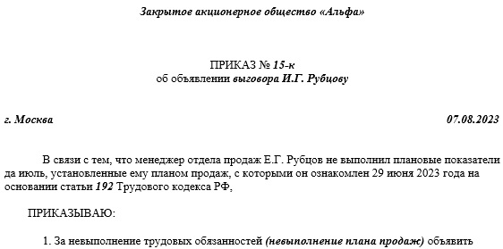 Отмена выговора приказ 144 фото