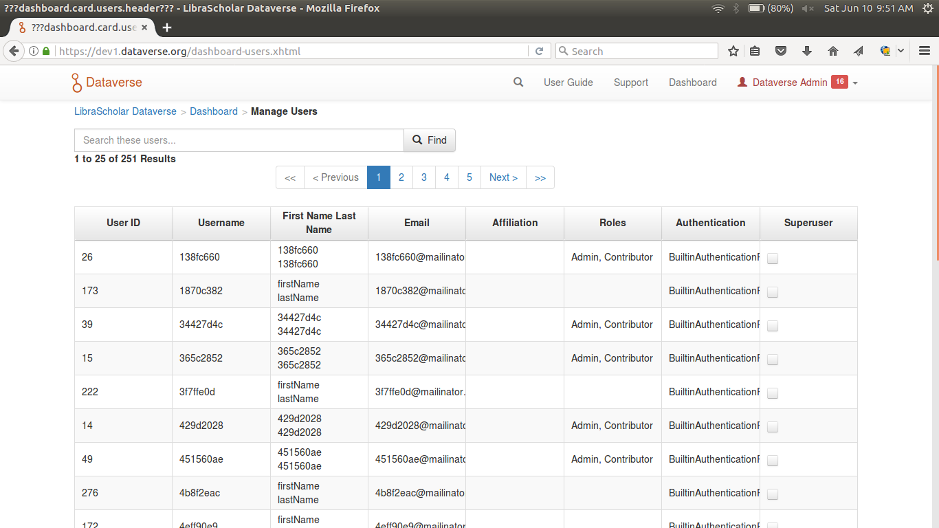 Отображение user