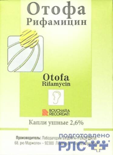 Отофа : Английское/Латинское название: Otofa ® Действующее вещество: Рифамицин* (Rifamycinum) Особые отметки
