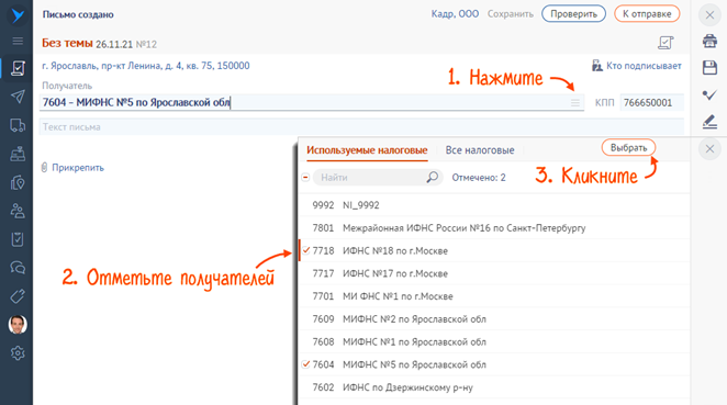 Отправить форму в ифнс
