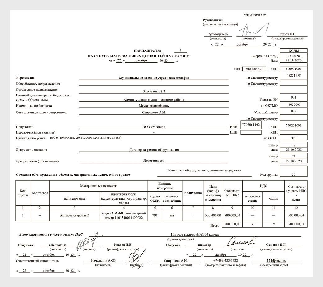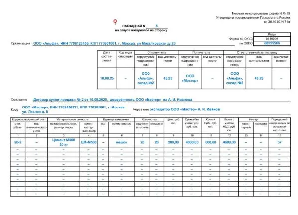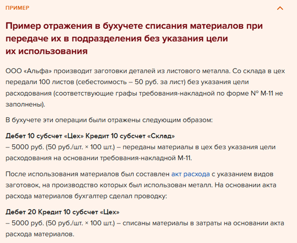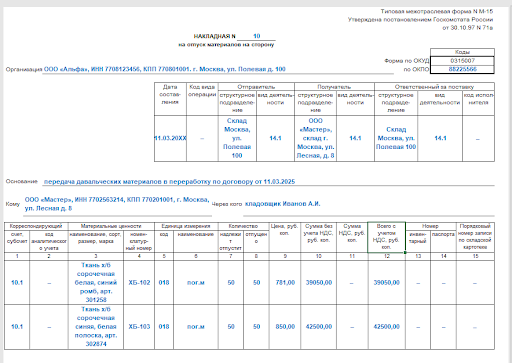 Отпущены материалы документ