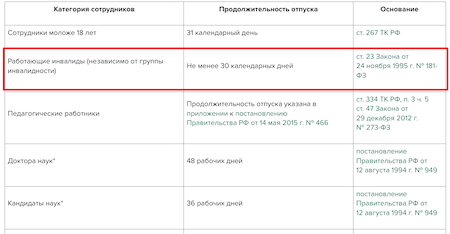 Отпуск для работников с инвалидностью