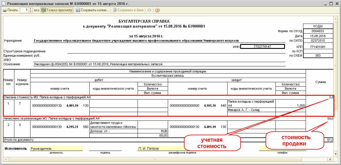 Отпуск материалов в производство проводка