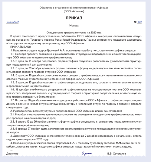 Отпуск по графику как оформить