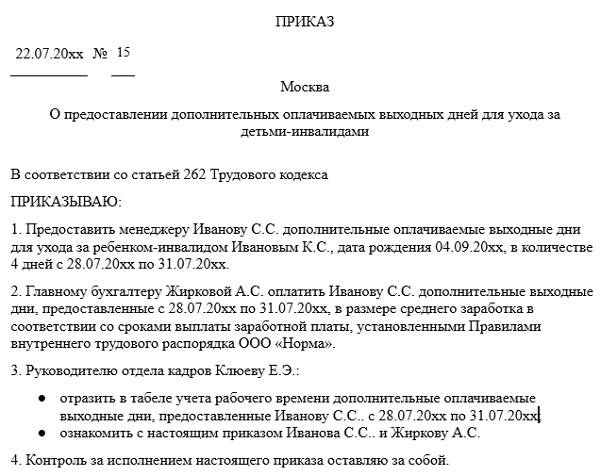 Отпуск по уходу за матерью инвалидом