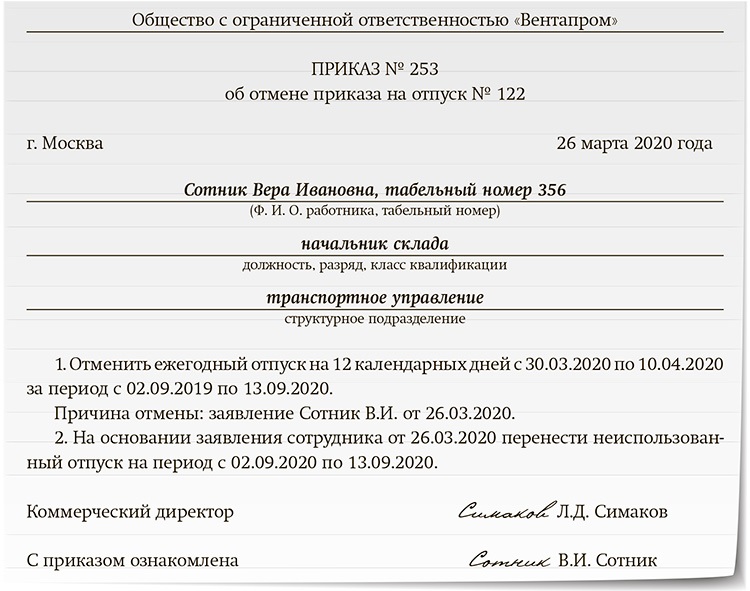 Отпускные сторнируем